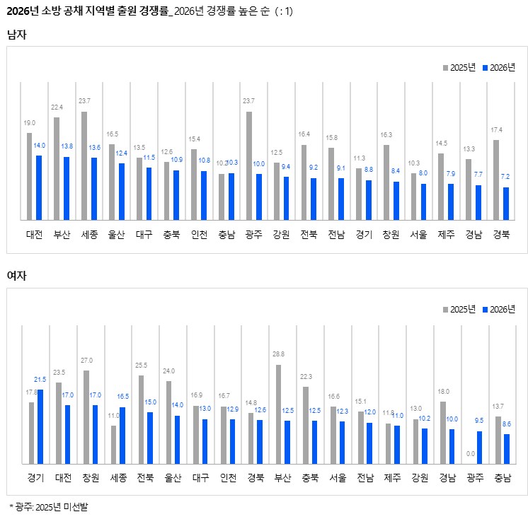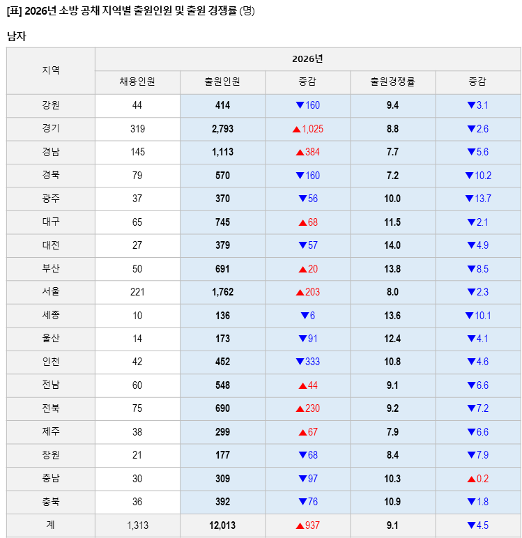 [소방 공채] 2026년 소방 공채 지역별 출원 경쟁률 분석