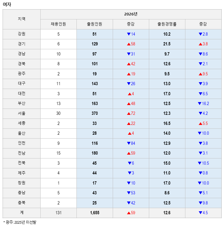 단순히 올해의 경쟁률만 볼 것이 아니라 각 지역의 채용규모 변화와 그에 따른 지원자 이동 흐름을 종합적으로 분석하는 것이 좋다.