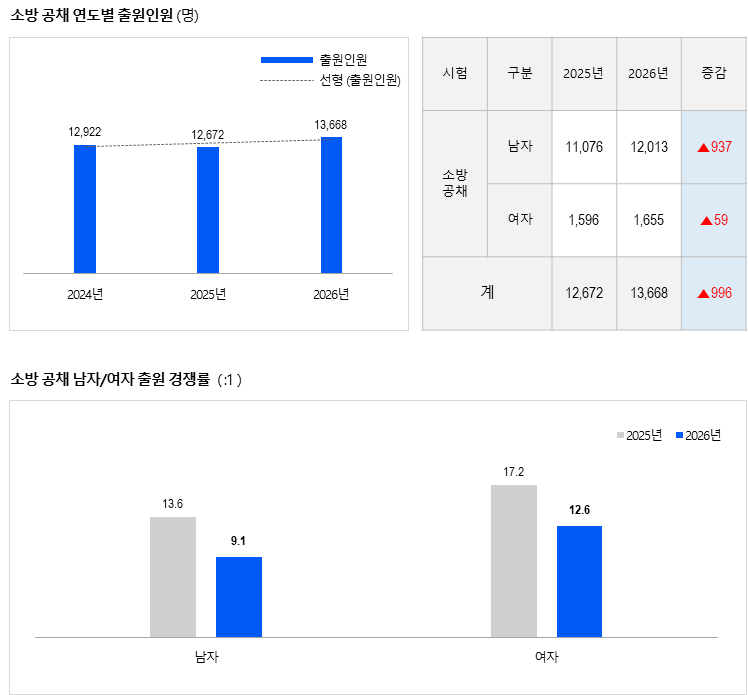 2025년 12,672명에서 2026년 13,668명으로 약 1,000명 가까이 증가했다.