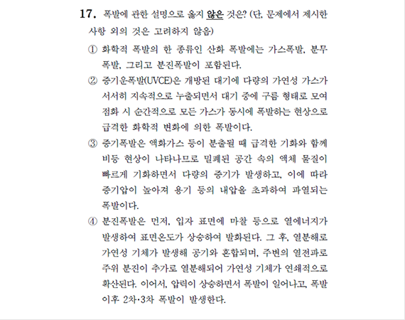 2026 소방직 시험 소방학개론 17번 문항