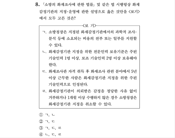 2026 소방직 시험 소방학개론 8번 문항