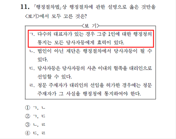 2026 소방직 시험 행정법 11번 문항