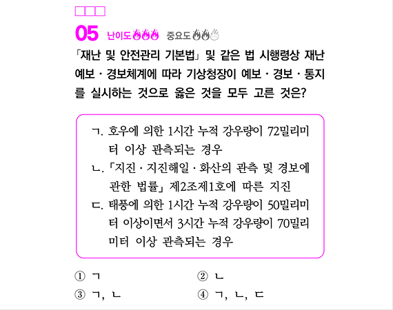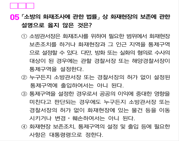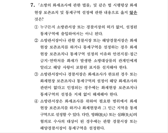 2026 소방직 시험 소방관계법규 공채 5번 / 경채 7번 문항