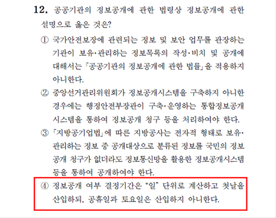 2026 소방직 시험 행정법 12번 문항 - ④ 지문