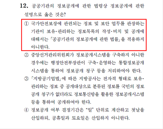 2026 소방직 시험 행정법 12번 문항 - ① 지문
